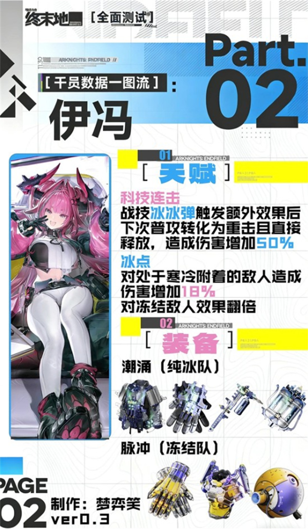 在《明日方舟:终末地》中,干员伊冯是冰系输出核心,主要依靠挂冰附着和大招造成高额伤害。她的回转速度较慢,容易被打断,因此合理的培养和配队至关重要。下面小编整理了伊冯的培养思路与配队方案,帮助玩家高效发挥她的输出能力。