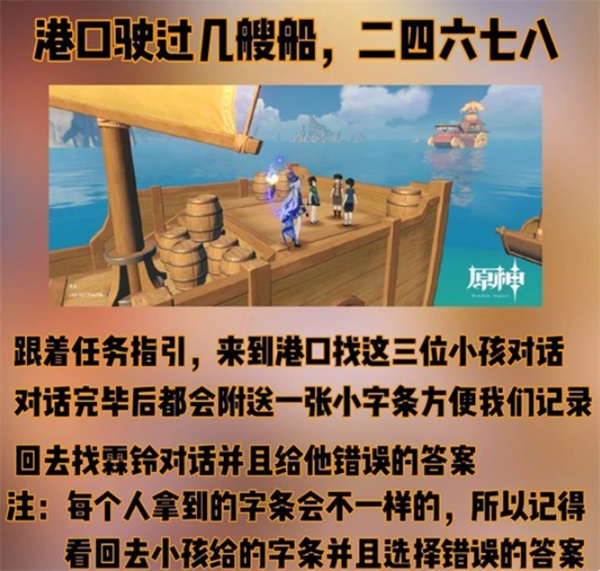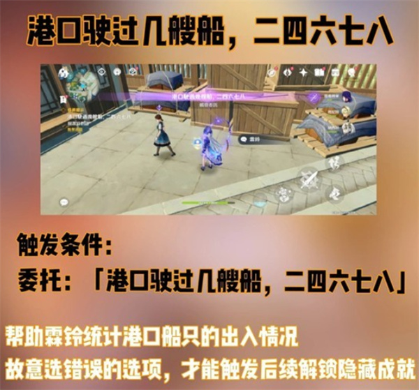 1、前往港口,与霖铃对话,她因写诗耽误了船只统计,需要玩家帮助。